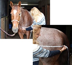 Dekkenet er dimensjonert i henhold til hestens mål fra midt på brystet, videre langs siden til hestens bakdel. Halsen på dekkenet skal ligge godt over hestens manke. Hvis dekkenet glir bakover fra manken mot ryggen, så er dekkenet for stort for hesten. Det bør også kunne lukkes tett og sikkert ved brystet.