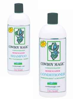 Fordi hester som er helklippet ofte lider av tørr hud, er det viktig å bruke fuktighetsgivende pleieprodukter med høy kvalitet. Ikke bruk produkter som stripper huden for naturlige oljer. COWBOY MAGIC ® ROSEWATER SHAMPOO inneholder balsam og panthenol som gir næring og fuktighet til hud og hår. COWBOY MAGIC ® DEMINERALIZER ™ CONDITIONER balsam kan brukes rett fra flasken, eller fortynnet i forholdet 20 deler vann og en del balsam. Når dette masseres inn i håret (også kort, klippet hår), løsner håret og oppløser hvilken som helst mineral og kjemisk oppbygging. Den inneholder også proteiner og panthenol som trenger inn i selve håret og huden. Ved å tilføre nok fuktighet til hestens hud og pels, vil det også bidra til å redusere statisk elektrisitet om vinteren.